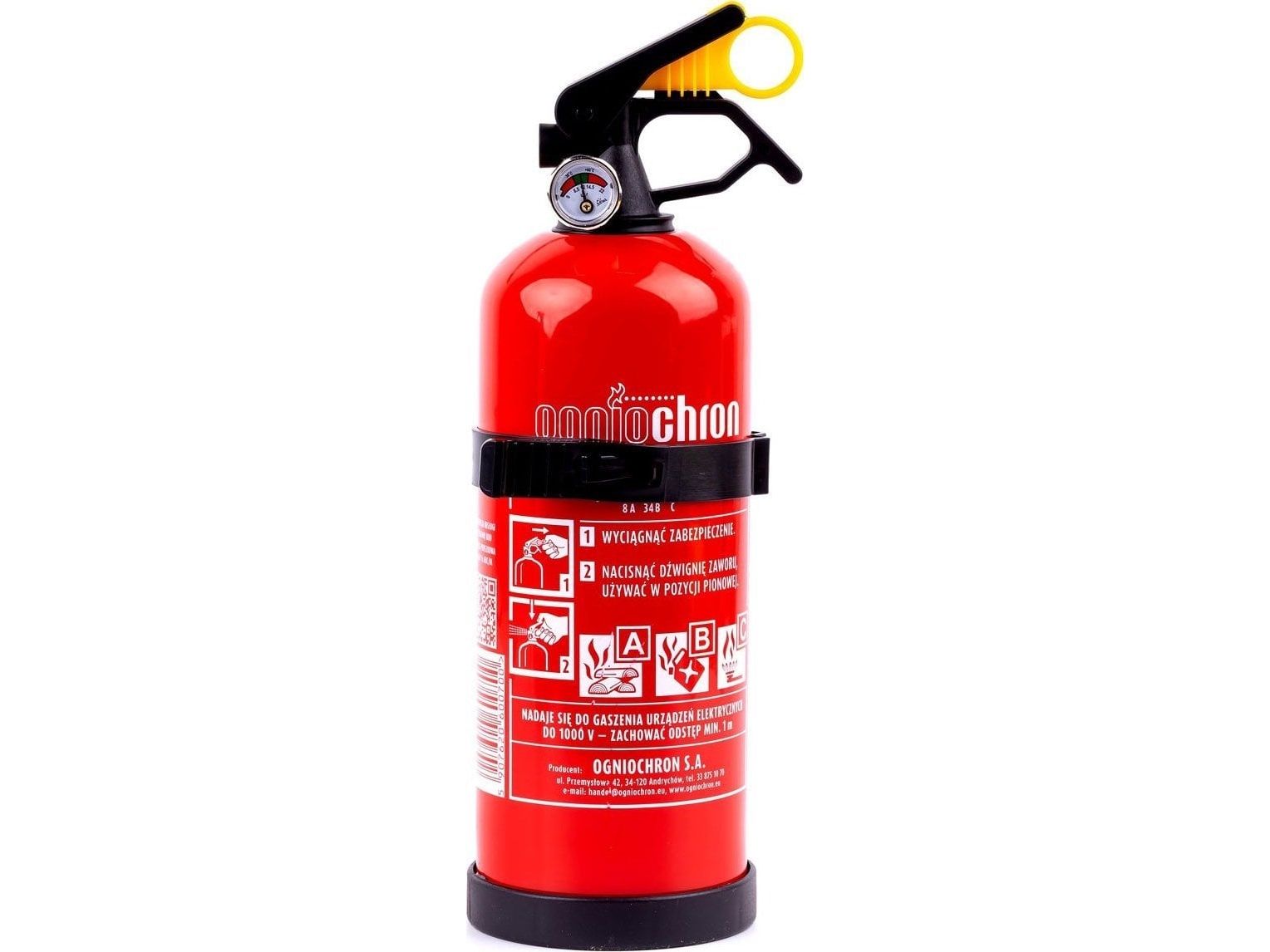 Ogniochron pulversläckare ABC med manometer och hållare, 1 kg