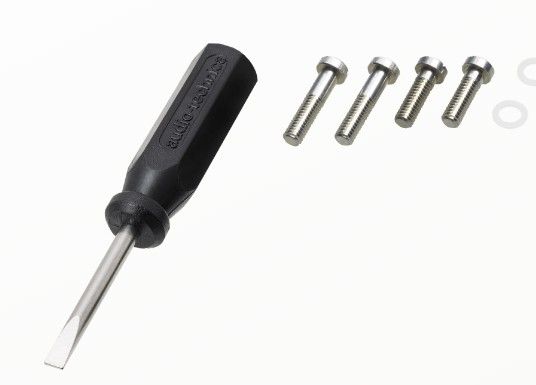 Pickup, grammofonkassettpenna, 2 st. installationsskruvar på 11 mm, 2 st. installationsskruvar på 8 mm, 2 mellanläggsbrickor, skruvmejsel