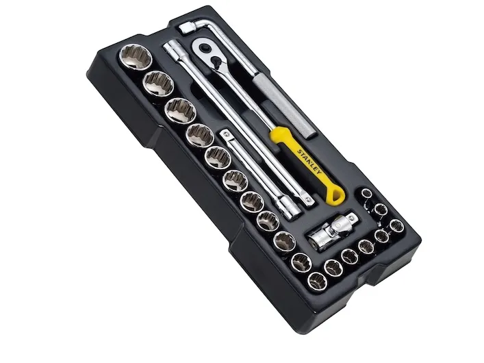 Stanley STMT1-74726, Hylssats, 1/2", Metriska/brittiska, 23 huvuden, 8,9,10,11,12,13,14,15,16,17,18,19,21,22,27,30,32 mm, Kromvanadinstål