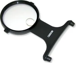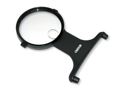 The HF-25 MagniFree™ from Carson Optical is a Hands Free, hanging 2x Magnifier with a 3.5x power bi-focal spot lens. The MagniFree™ Magnifier has an adjustable cord for easy positioning. This Magnifier is perfect for crafts and any hobby or activity where both hands are needed!