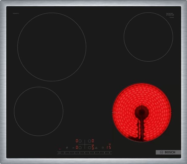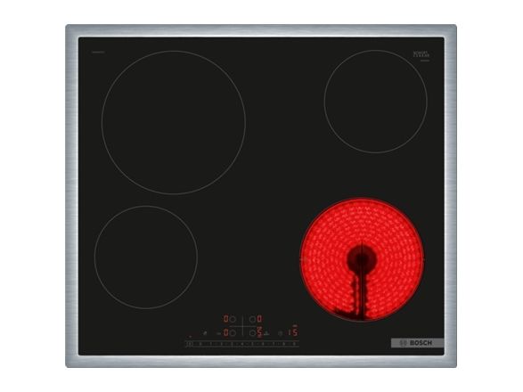 Bosch Serie | 6 PKE645FP2E - Keramisk häll - 4 kokplattor - Fördjupning - bredd: 56 cm - djup: 49 cm - med kanter i rostfritt stål - svart / rostfritt stål
