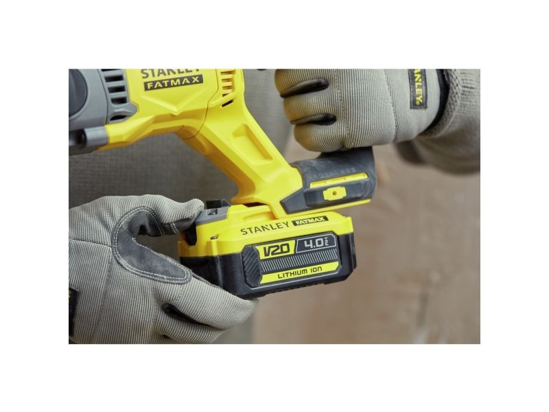 The Stanley Fatmax V20 SFMCH900B rotary hammer is designed for heavy-duty tasks with versatility in mind. This cordless rotary hammer operates on an 18 V lithium-ion battery and features a powerful brushless motor to improve efficiency and extend battery life. With a maximum treatment size of 40 mm, it is suitable for various materials including steel, metal, concrete, masonry, and stone, making it a robust choice for any construction or renovation project.