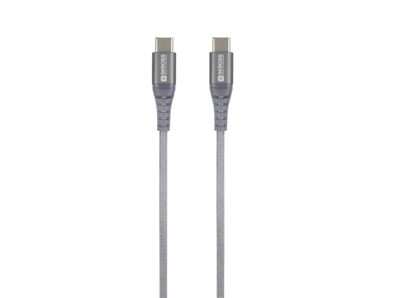 Skross USB-kabel USB 2.0 USB-C®-kontakt 1,20 m Rymdgrå Rund, flexibel, tygklädd SKCA0017C-C120CN