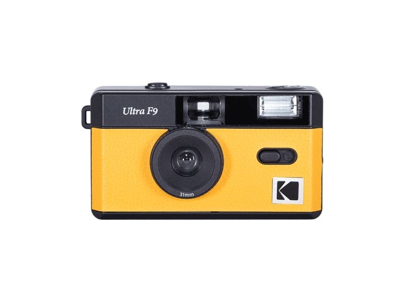 Perfect for travel, the KODAK film camera Ultra F9 has a fixed focus lens, manual film winding and rewinding and a switch to turn flash On/Off.