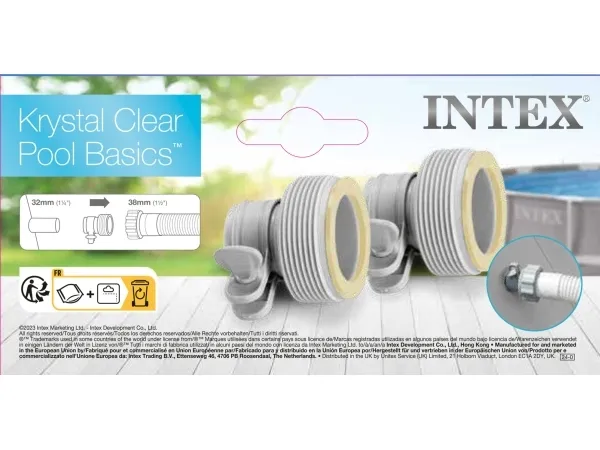 Kobler Intex 32 mm klemme- til 38 mm gevindmontering. 2 adaptere.