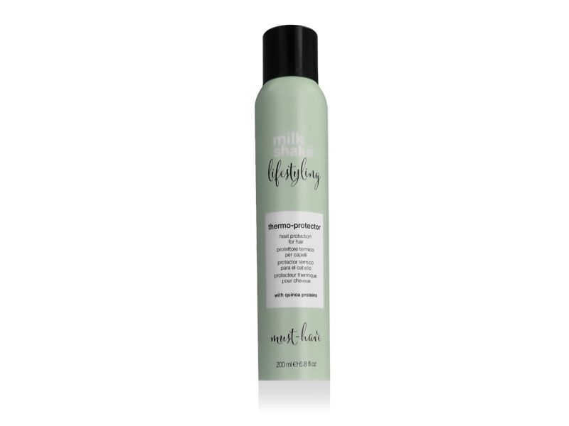 Thermo-Protector fra milk_shake er en skøn varmebeskyttende spray, der sørger for en uundværlig varmebeskyttelse, inden håret skal styles med varmeredskaber, som f.eks. føntørre, glatte -og krøllejern. Dens ultra fine formel lægger sig rundt om hvert enkelt hårstrå, så det effektivt bliver beskyttet. Derudover indeholder den også quinoa proteiner, så håret bliver får tilført ekstra styrke, så det bliver ved med at holde sig sundt. Varmereskaber er en af de største syndere til et ødelagt hår, og med denne fantastiske spray kan man effektivt modvirke det. Forkæl dit hår med Lifestyling Thermo-Protector, der giver den ultimative beskyttelse, uden hverken at tynge eller fedte.