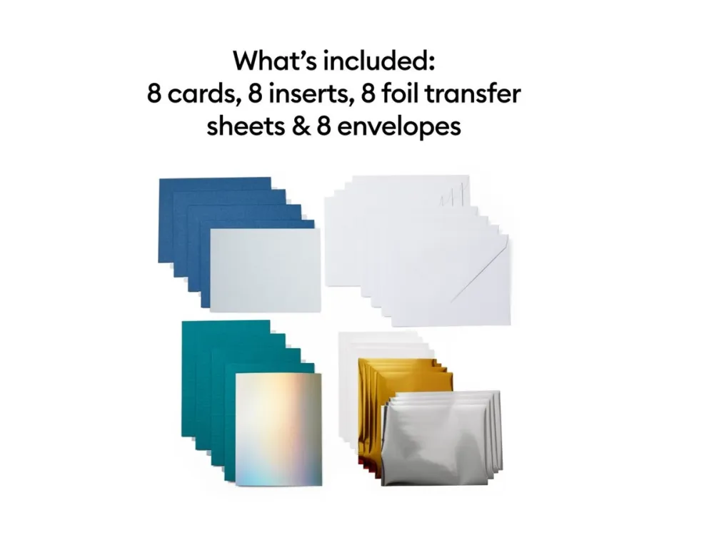Add a little shimmer to your insert card creations in minutes with Foil Transfer Insert Cards for your Cricut Joy cutting machine. The ingenious glue-free design allows for two-tone, depth-filled cards without mess or hassle. These cards include envelopes and come in a bounty of colors to please every card recipient on your list!
