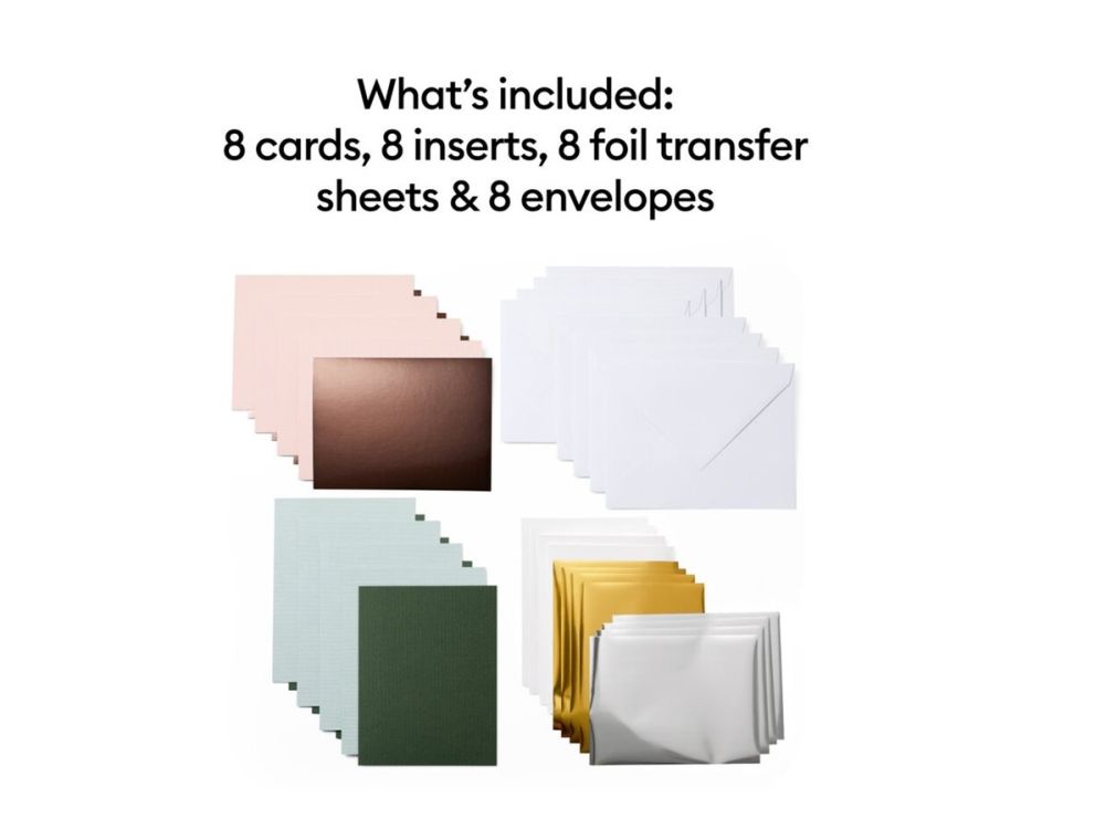 Add a little shimmer to your insert card creations in minutes with Foil Transfer Insert Cards for your Cricut Joy cutting machine. The ingenious glue-free design allows for two-tone, depth-filled cards without mess or hassle. These cards include envelopes and come in a bounty of colors to please every card recipient on your list!