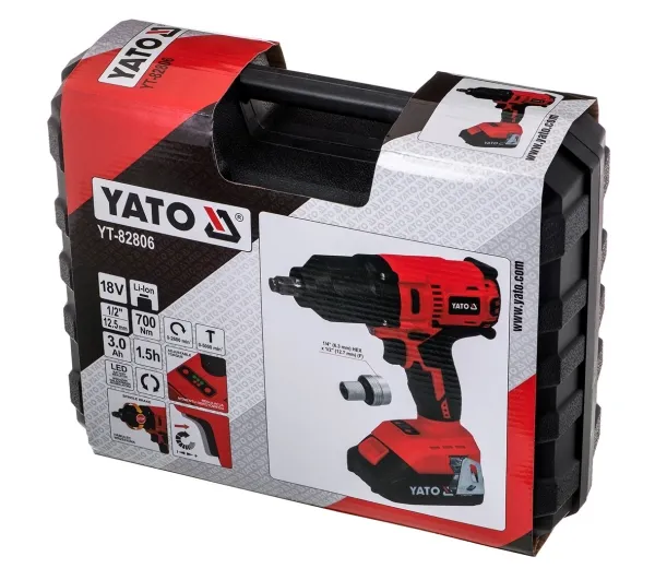 Yato YT-82806. International Protection (IP) code: IPX0. Battery technology: Lithium-Ion (Li-Ion), AC input voltage: 18 V. Weight: 1.8 kg. Quantity per pack: 1 pc(s)