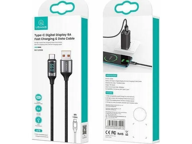 Kabel USB Usams USB-A - USB-C 1,2 m Czarny (6958444975412)