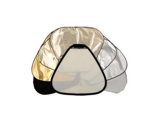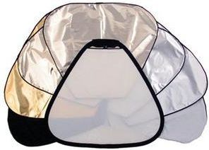 The TriFlip 8:1 kit includes a 75cm (30") 2 Stop TriGrip Diffuser and two double sided, reversible TriFlip covers which together offer the following surfaces: -2 stop diffuser. -Gold. -Sunfire. -Sunlite. -Silver. -SoftSilver. -White. -Black.