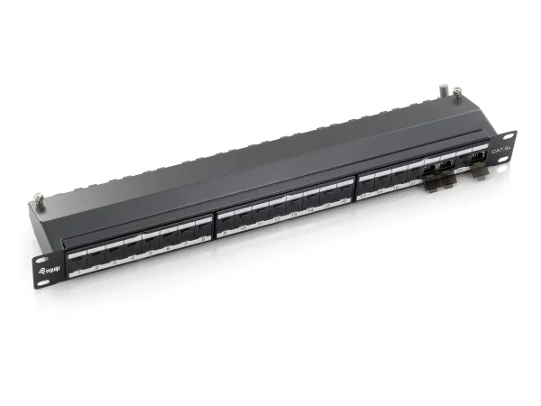 The equip® Cat.6A Patch Panel is a 19" 1U network distribution unit integrating cable management system for better routing and strain relief requirements, suitable for Krone IDC standard. Featuring 24 fully-shielded RJ45 ports, this patch panel is recommended to connect with equip® Cat.6A patch cords and cabling accessories to achieve outstanding 10G performance. Moreover, each port is marked with port number for recognition.