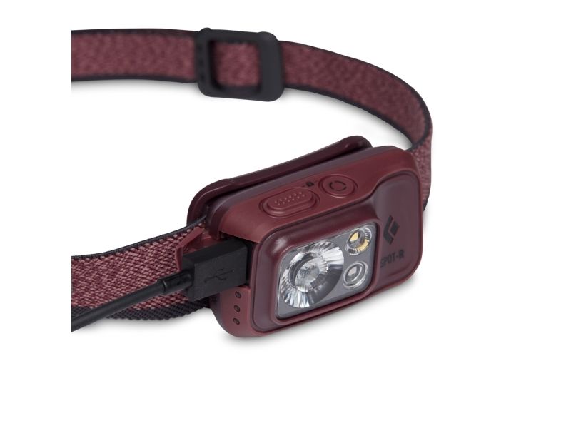 Black Diamond Spot 400-R, Pannbandsficklampa, Bordeaux, Knappar, 1 m, IP67, 400 LM
