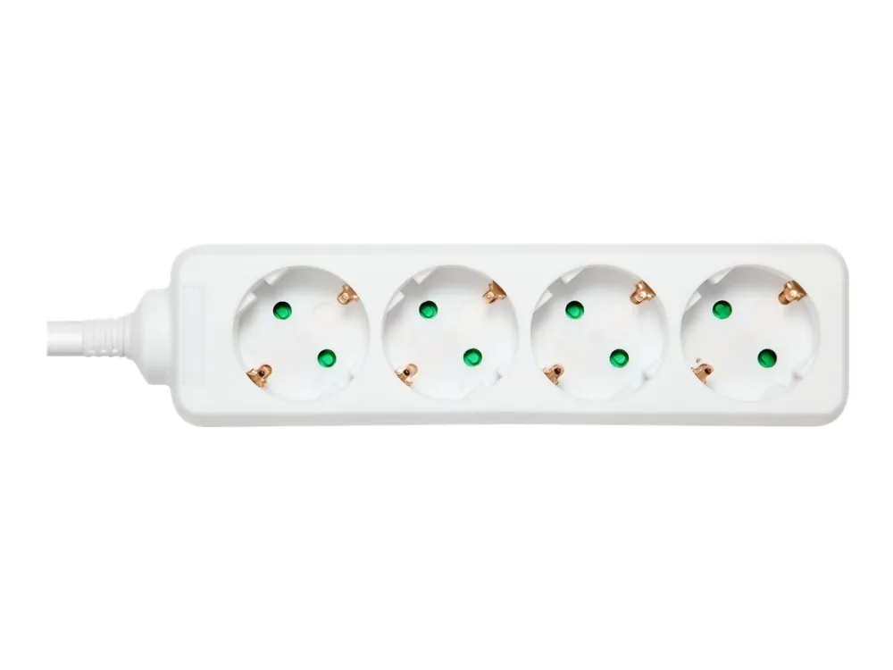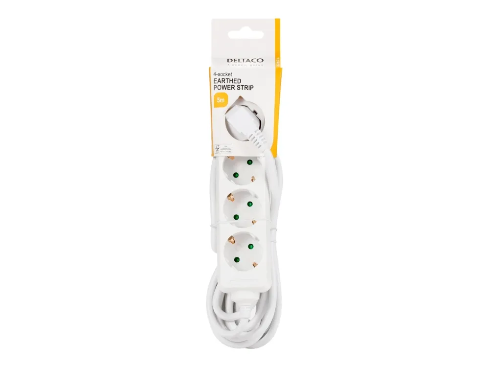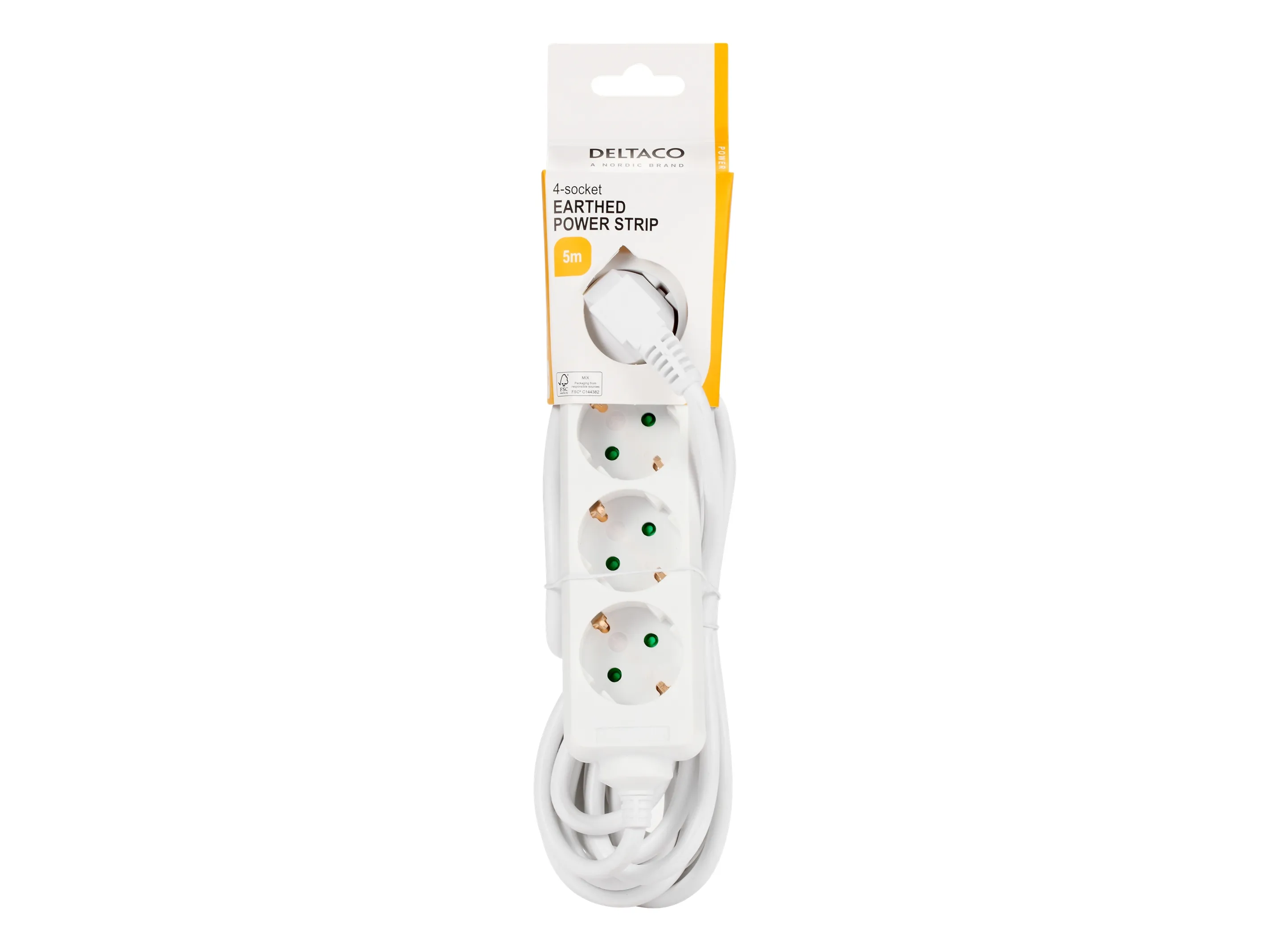 DELTACO GT-0402 - Effektband - AC 250 V - 3680 Watt - ingång: power CEE 7/7 - utgångskontakter: 4 (4 st. CEE 7/3) - 5 m sladd - vit