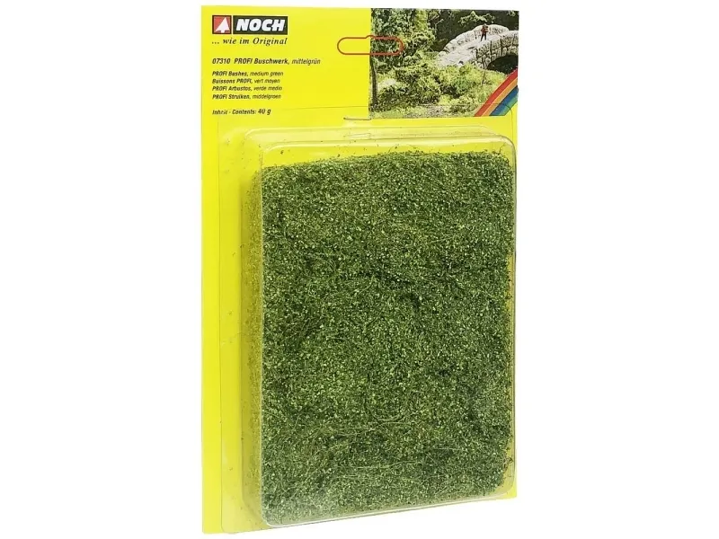mellemgrønideal til realistiske buske og vilde hække.I modsætning til rent afskårne græsflader og præcise buske og hække søger den frit voksende natur at dæmpe lyset og begrænser ikke dens vækstmuligheder. Til modelbyggeren er det en stor udfordring at fremstille denne frit afbalancerede natur i modellen.Med DEN PROFESSIONELLE busværk kan den vilde natur efterdannes perfekt i modellen. DET PROFESSIONELLE buschwerk egner sig både til flade, intensive jordbevoksning, som for eksempel Brombærebrops eller højere tæt buskreværk i modellen. Bærematerialet af det super-realistiske bushværk er en naturlig fiber, der er stabil og let at forme. Den er bestrøet med en speciel blanding AF løv OG endnu strukturblok for at opnå en naturlig optisk virkning. Dermed får vi et unikt produkt, som ideal, når det gælder om at få tæt vegetation til at fremstå i modellen.