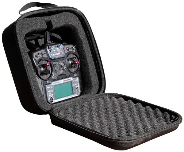 )Förstklassig, stöttålig skyddsväska som passar alla vanliga R/C-sändare. Mjukt inre stoppning, bärhandtag.