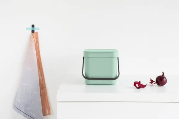 This cute 3 litre Brabantia Sort & Go Recycle Bin with stay-open lid is great for peels, scraps, leftovers... all organic kitchen-waste actually. Just display it on your worktop or hide it in a drawer. Full? Grab it by its handy handle and empty it on your compost heap or in your organic waste container. A great bin in XXS size!