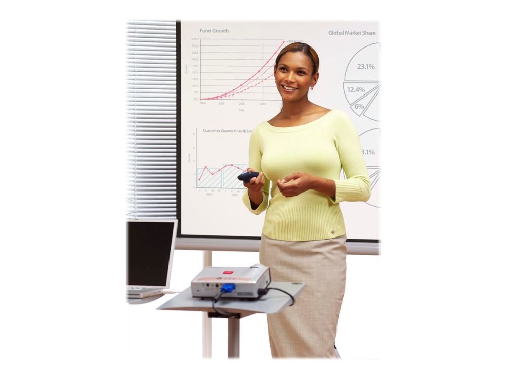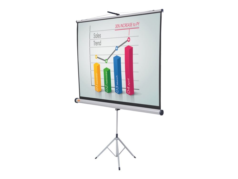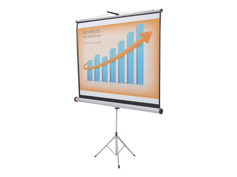 1902395 is a range of high quality flexible tripod projector screens. The brilliant matt surface provides a sharp, detailed image that can be easily viewed by everyone in the audience. The screen can be easily retracted into its housing to protect from damage.