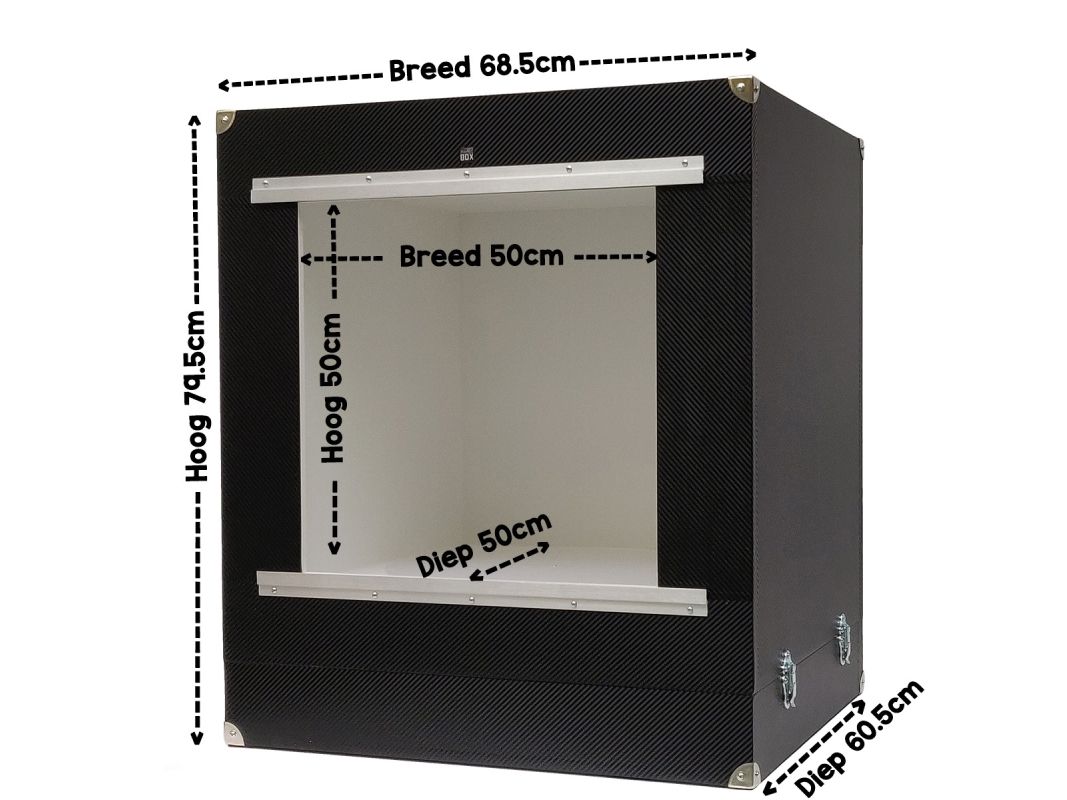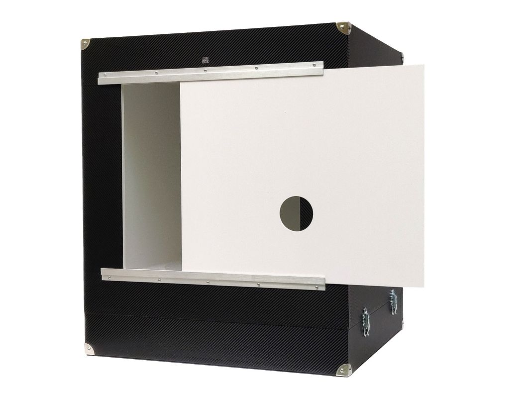 MagicBOX Square har vackert diffust ljus från 5 sidor, så du får ingen skugga och en nästan vit bakgrund! MagicBOX Square levereras som standard med en dörr med ett hål i. För mycket spegelblanka föremål kan fotot tas genom hålet för minimal reflektion utifrån. Den maximala belastningen är ±6 kg.