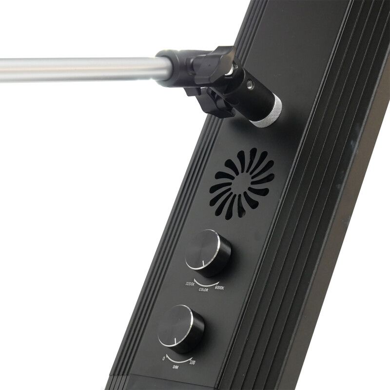 De 4 justerbare lyspaneler af 60 watt LED bi-farve (farvetemperatur justerbar) 240 dæmpbare LED'er kan dæmpes pr. lampe for den ideelle eksponering.