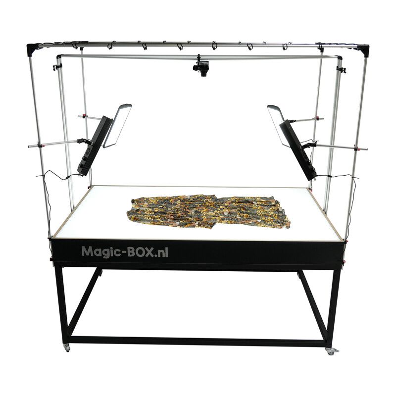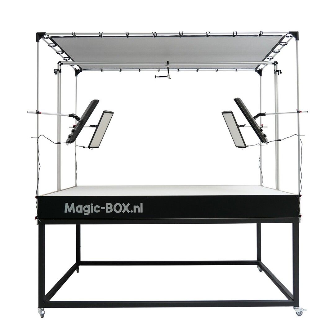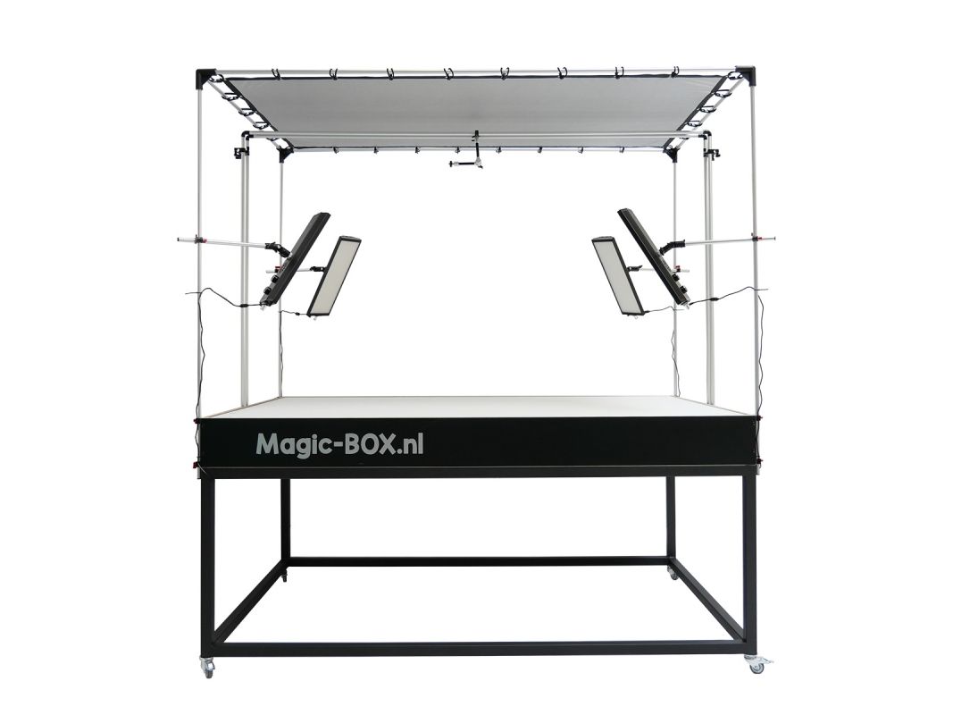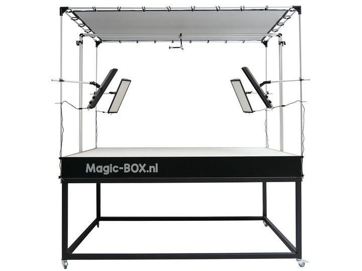 MagicBOX Packshot Table har dejligt diffust lys nedefra og fra de 4 hjørner, hvilket efterlader dig uden skygge og en praktisk talt hvid baggrund! Den maksimale belastning er omkring 10 kg.
