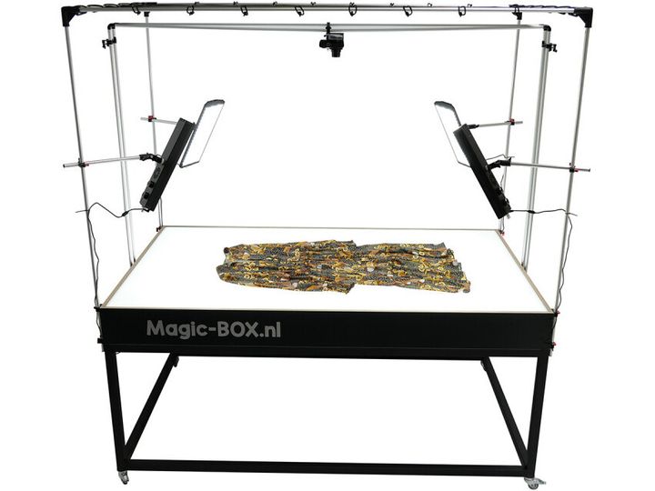 MagicBOX Packshot Table er et arbejdsbord, hvorpå du kan fotografere mange forskellige genstande: Med kameraskinnen kan du fotograferes fra forskellige sider, men du kan selvfølgelig også tage billeder fra siden med din mobiltelefon eller med kameraet på en stativ gør. Fordelen ved kameraskinnen er, at der kan vælges et fast punkt, så alle billeder tages fra samme vinkel.