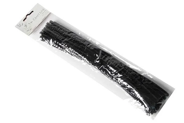 Chenille 6mm 30cm 25stk sort