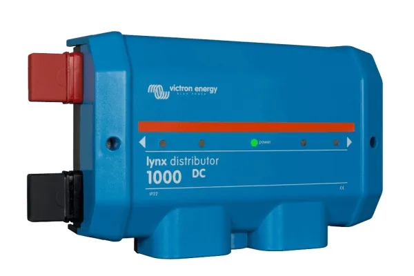 DC-sammelstång Lynx DistributorEn modulär DC-sammelstång utrustad för fyra DC-säkringar. Den övervakar statusen för varje säkring och visar dess tillstånd via en lysdiod på framsidan. Ingår i Lynx modulära distributionssystem.