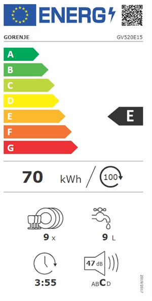 Discover the Gorenje GV520E15 dishwasher, a fully integrated, built-in solution designed to make dishwashing efficient. With a focus on eco-friendly operation, it features a 9-liter water consumption per cycle and an Eco Program that ensures your dishes are not only clean but are done so with minimal environmental impact. The dishwasher boasts a variety of special programs and options such as half load, intensive wash, and quick wash, tailored to meet all your dishwashing needs. Its Class A drying efficiency means dishes come out perfectly dry, ready to be put away without additional effort. Constructed with a durable stainless-steel tub and equipped with AquaStop leak protection, this dishwasher is built for reliability and peace of mind. Additionally, its quiet operation at 47 dB(A) during the Eco Program ensures your kitchen remains a tranquil space, even when the dishwasher is running. With energy class E efficiency, it's a smart choice for any modern kitchen.