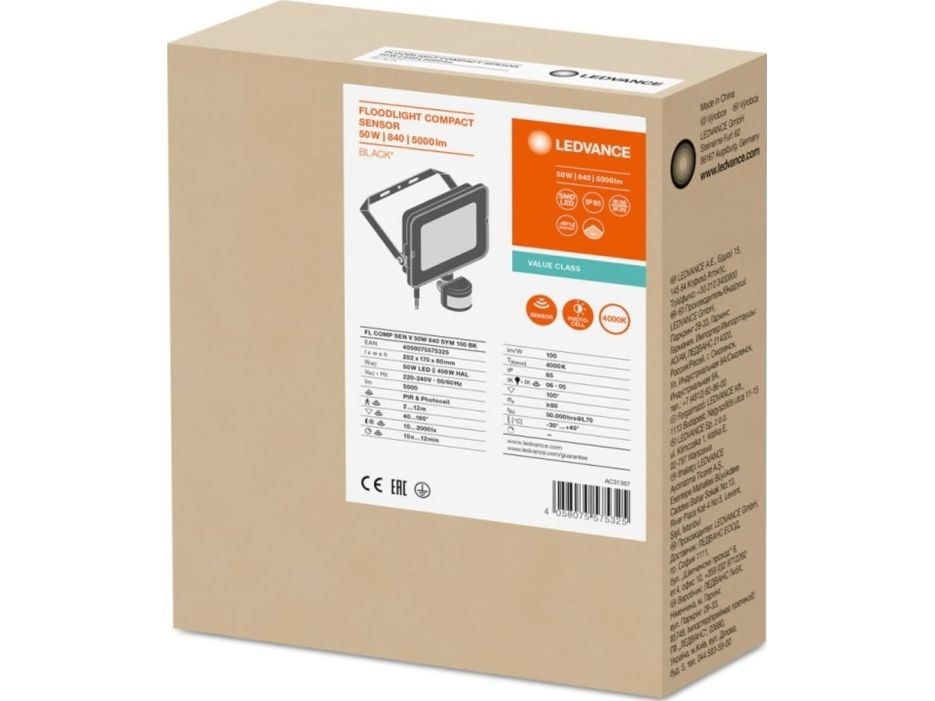 LEDVANCE strålkastare Compact Value Sensor 5000 lm 50 W 840 IP65