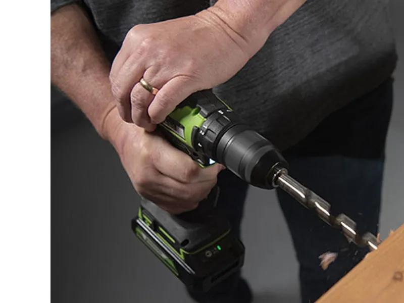 Den borstlösa motorn ger längre livslängd, bättre batterianvändning och mindre värmeutveckling. Borrning och skruvdragning underlättas av verktygsfri laddning av borr och bits, medan den integrerade LED-lampan ger optimal sikt under arbetet.