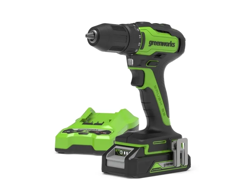 Innehåll i paketet 1 x Greenworks GD24DD35 borrskruvdragare 1 x Greenworks G24B2 24V 2Ah Li-ion-batteri 1 x Greenworks G24C universalladdare 1 x Transportväska