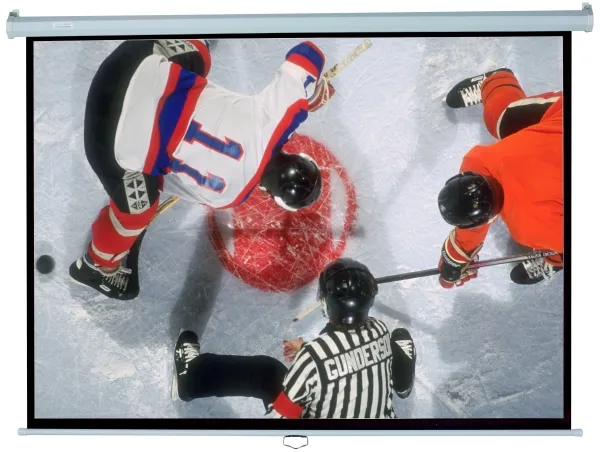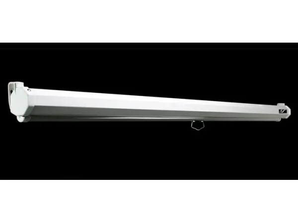 Elite Manual är en kostnadseffektiv infällbar frontprojektionsduk med dubbla höljen för installation på vägg eller i tak.