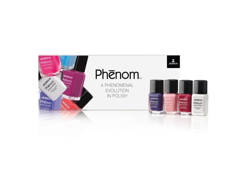 Jessica A Phenomenal Evolution i polskt set Jessica: Phenom Vivid Colour, top coat, nagellack, PHEN-000, Finale Shine, 15 ml + Phenom Vivid Colour, nagellack, PHEN-020, Barbie Pink, 14 ml + Phenom Vivid Colour, nagellack, PHEN-022, Geisha Girl