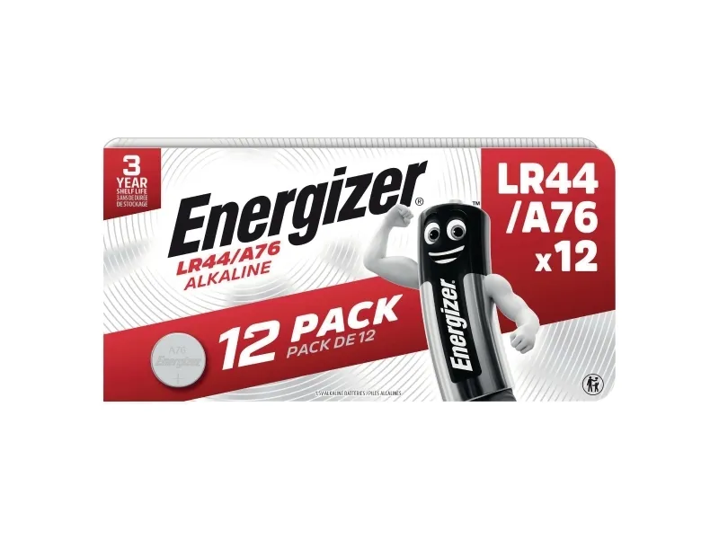 Knapcellebatteri, Energizer Alkaline, LR44/A76, 12 stk