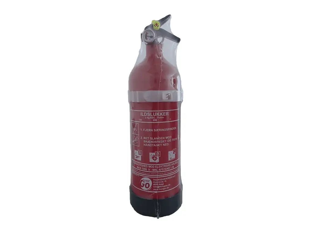 Egenskaber: Slukningsmiddel: 2 kg. ABC pulver A32 Drivmiddel: Nitrogen + 5% Helium Funktionsområde: -30C til +60C Godkendelse: DIN-EN3 SP 37/03 EN3-7 Type: PS2-Y ABC Made in Italy for Tourgear EAN 8057737953095