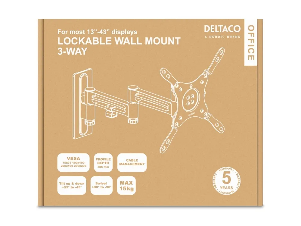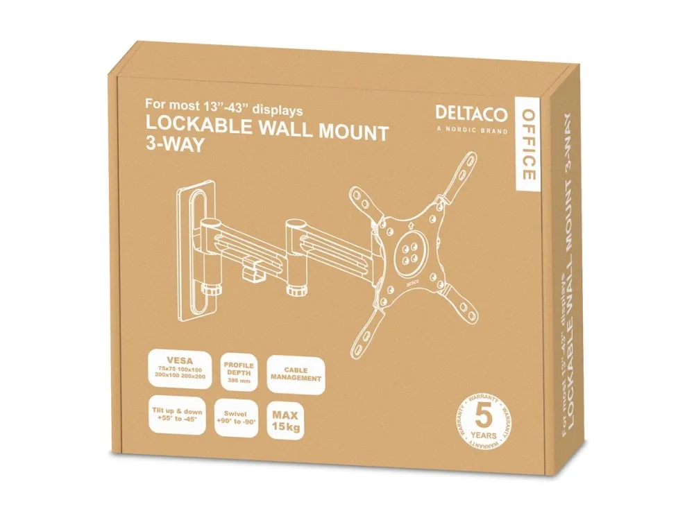 DELTACO Office ARM-0267 - Monteringssats (väggfäste, VESA-platta) - för platt panel - låsbar - svart - skärmstorlek: 13"-43" - RV