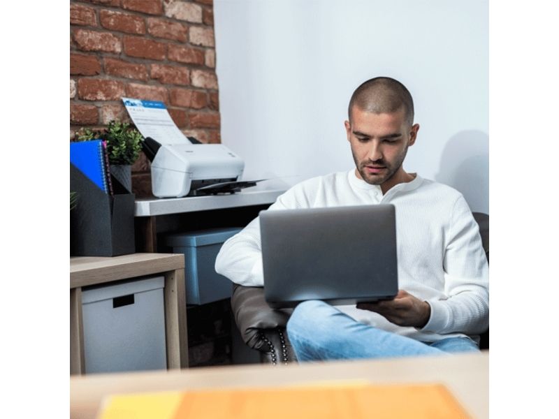 Enkel och intuitiv. Denna multifunktionella scanner är idealisk för företag som behöver scanna flera olika typer av media, från papper till laminerade kort, hemma eller på kontoret.