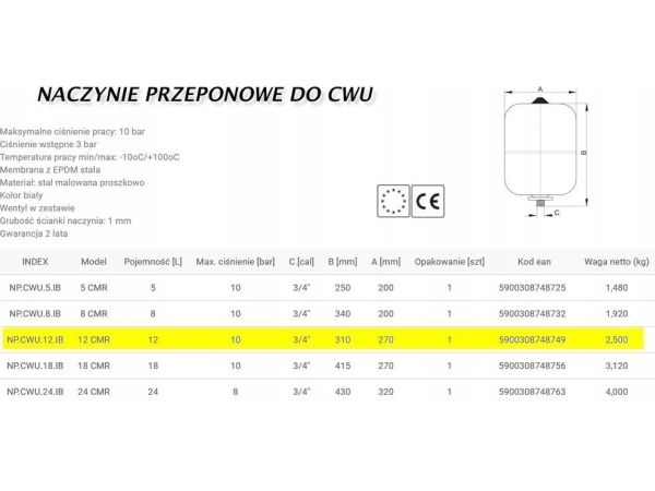 Hydroland expansionskärl/membran till c.w.u. IBAIONDO 8 l (NP.CWU.08.IB)