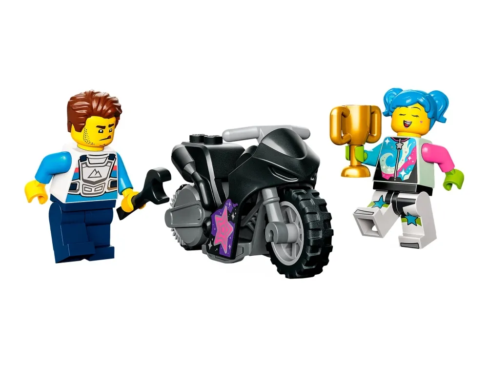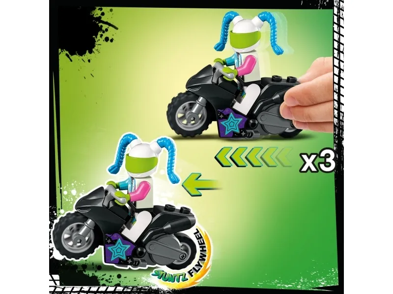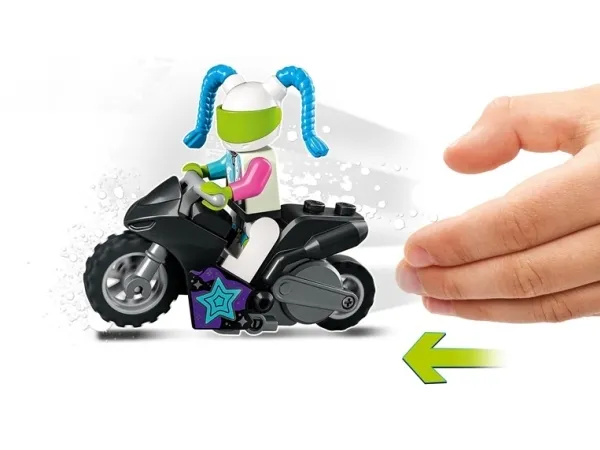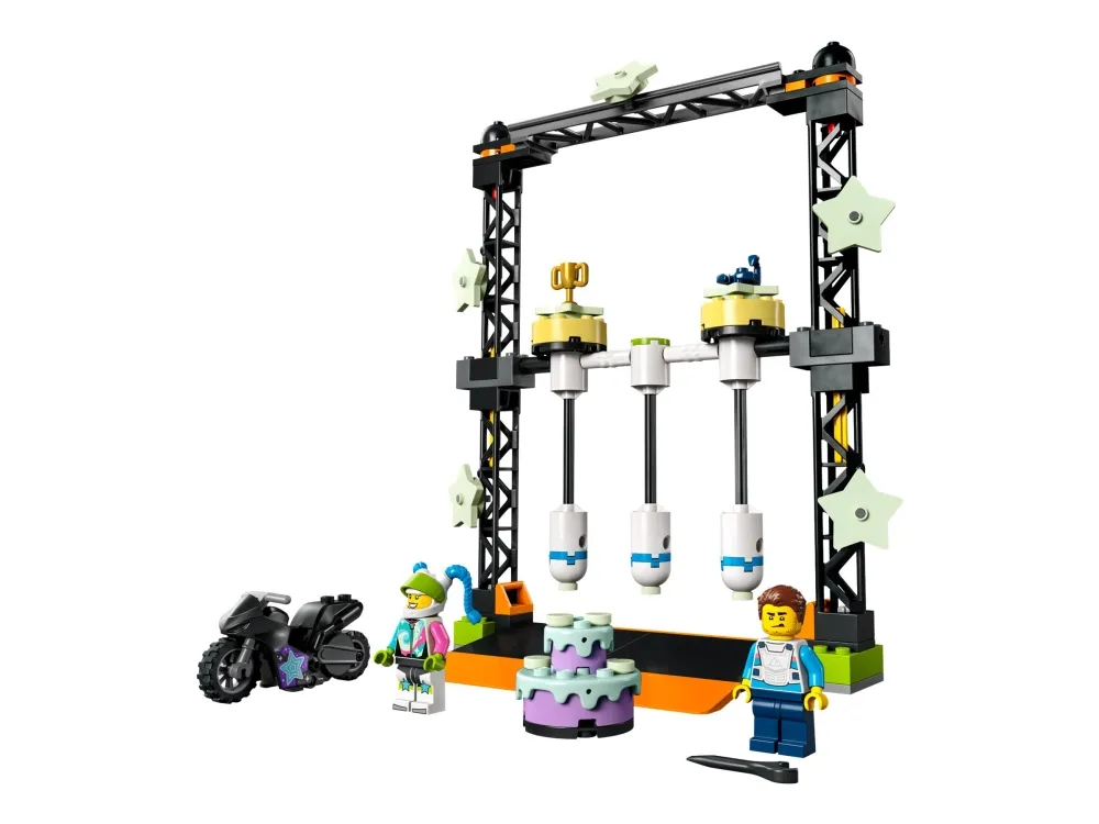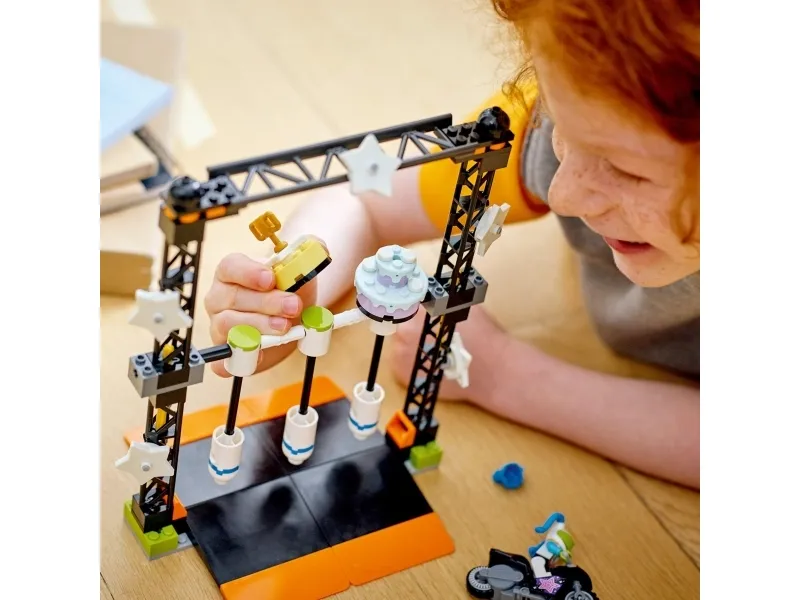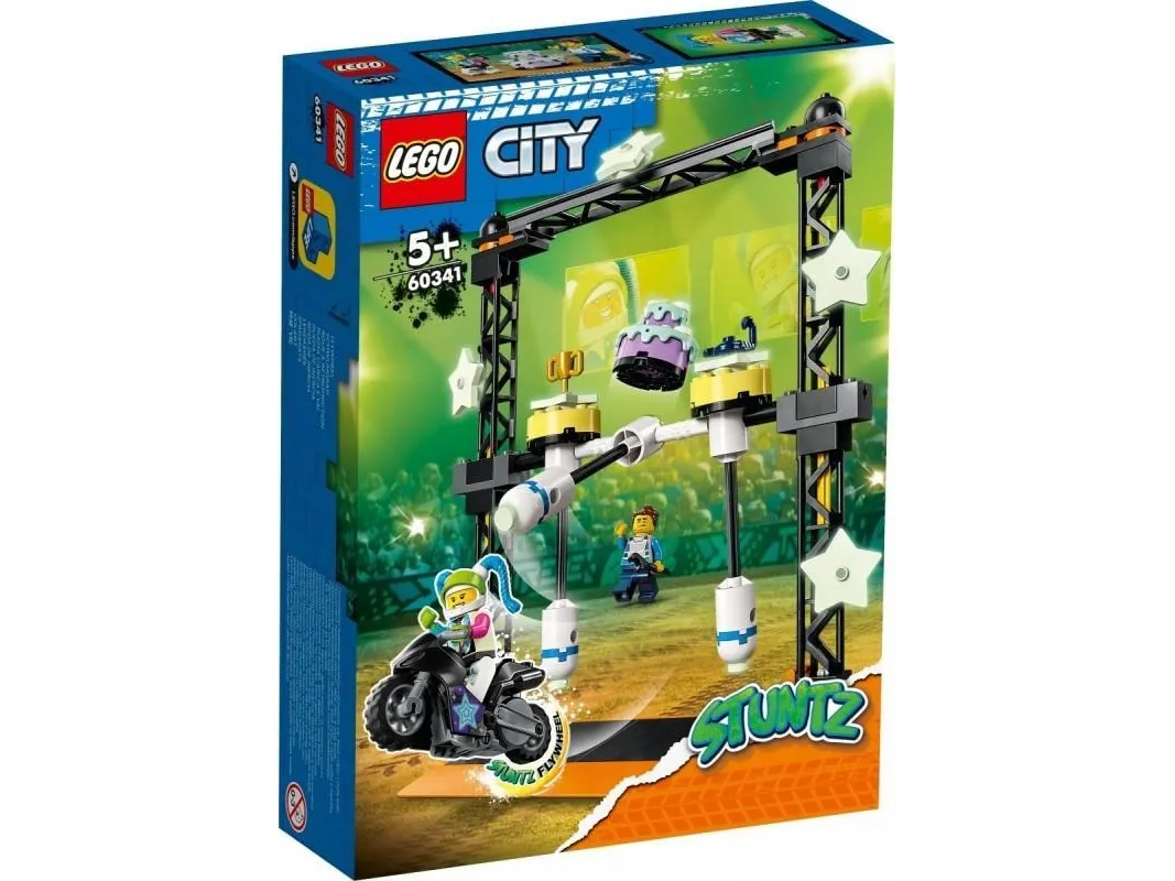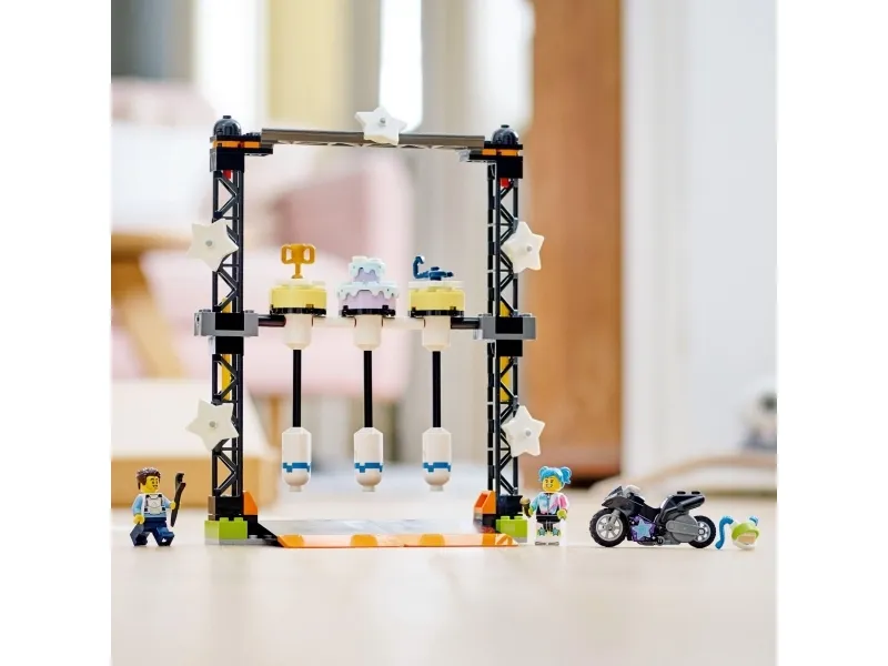 Barn som gillar att tävla kommer att älska leksetet LEGO® City Stuntutmaning med knuff (60341) med självlysande delar. Barn skickar iväg den flyghjulsdrivna motorcykeln för att träffa en pelare och vinna ett pris. Och med 2 populära karaktärer från LEGO City TV är scenen redo för roliga rollekar. Setet kan kombineras med andra set från LEGO City Stuntz serien för ännu mer stuntaction.