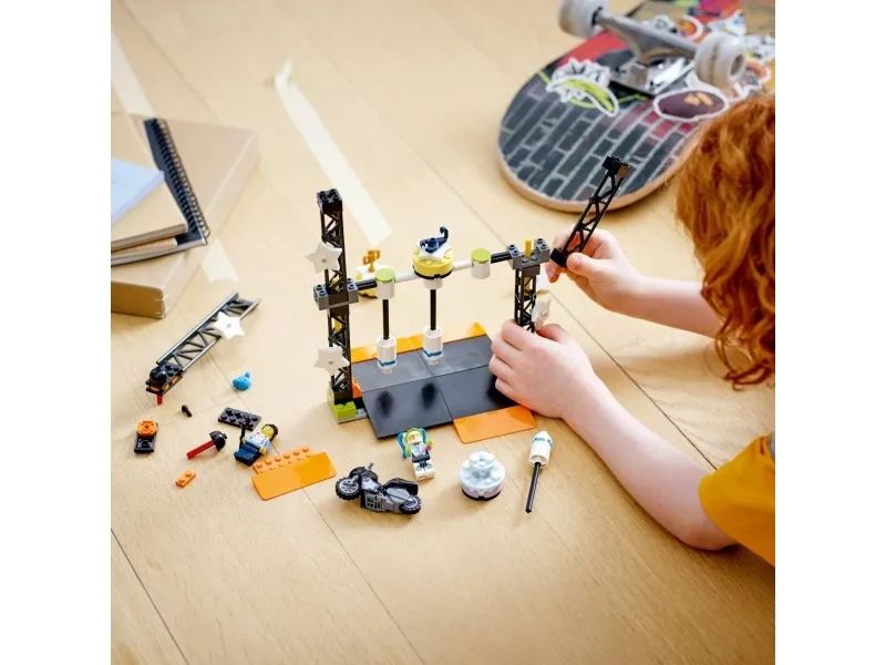 1. Stuntaction för barn från 5 år – Förbered scenen för roliga stuntshower och tävlingar med leksetet LEGO® City Stuntutmaning med knuff (60341), med 2 LEGO City TV minifigurer