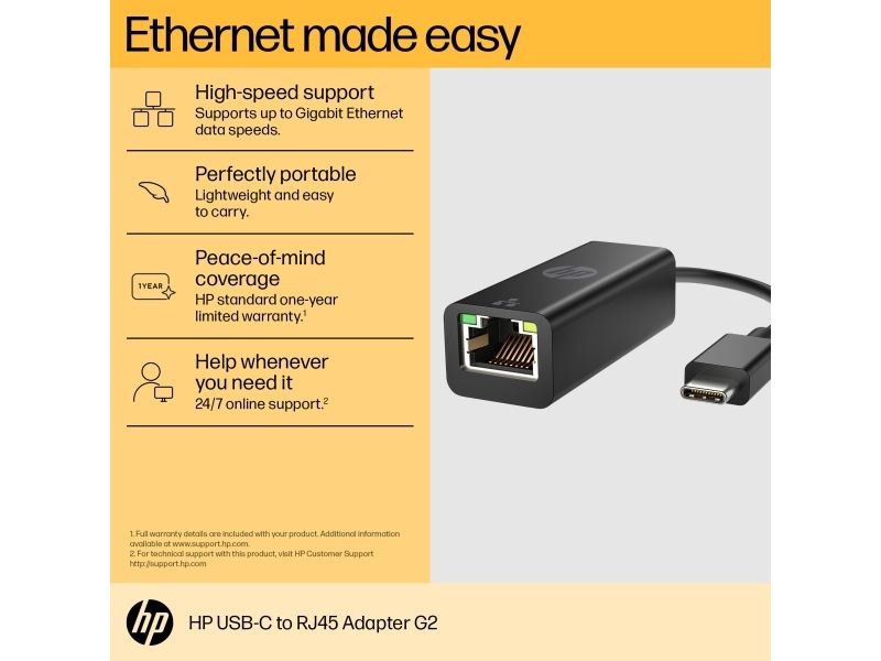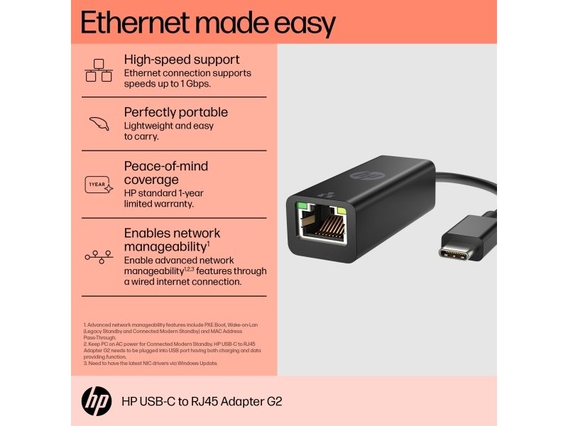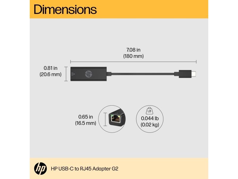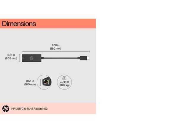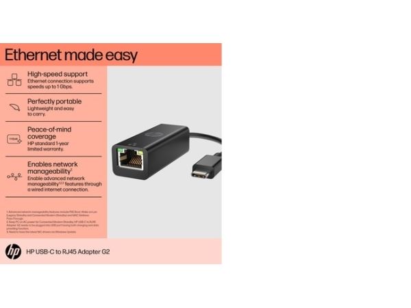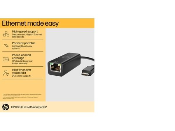 HP USB-C to RJ45 Adapter G2 - Nätverksadapter - USB-C - Gigabit Ethernet x 1 - för Victus by HP Laptop 15, 16; Fortis 11 G9; Laptop 14, 15, 17; Pavilion x360 Laptop