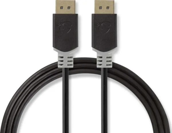 Nedis - DisplayPort-kabel - DisplayPort (hane) rak till DisplayPort (hane) rak - DisplayPort 1.4 - 2 m - formpressad, rund, stöd för 8K - grå, antracit