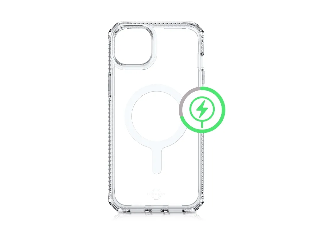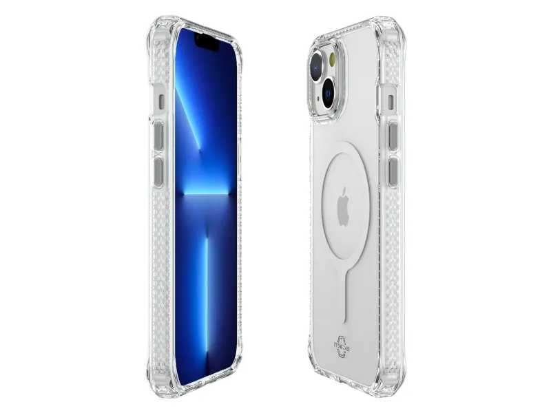 ITSKINS HYBRID_R // CLEAR - Baksidesskydd för mobiltelefon - robust - MagSafe-kompatibel - MagSafe-kompatibilitet - 100 % återvunnet material - transparent - för Apple iPhone 14 Plus