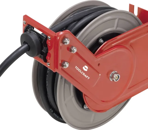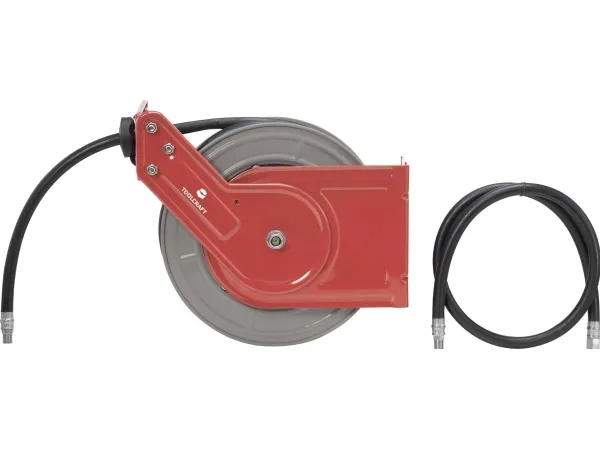 Trykluftslange-opruller 10 mFastlåsning ved træk Justerbar arm muliggør variabel slangeføring Egnet til væg- og loftsmontering Trykluftslange 10 + 1 m Ensartet oprulningsmekanisme Robust metalhus. Inkl. lufttrykkoblingSlangeopruller af robust metal til montering på væg eller loft med justerbar føringsarm for fleksibel slangeføring. Trykluft-slange med høj knækbestandighed samtidig med lav vægt samt modstandsdygtighed over for olie og opløsningsmidler. God opførsel i lave og høje temperatur.