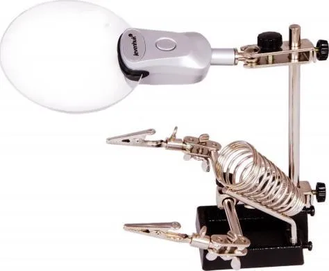The lens is made of optical polymer glass and delivers a clear and detailed image of a magnified object. Its durable metal body ensures stable stand and long service life. All the magnifiers in this series have third hand holders that securely fix an object.