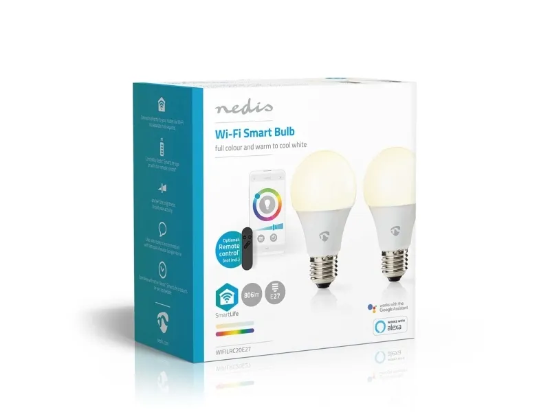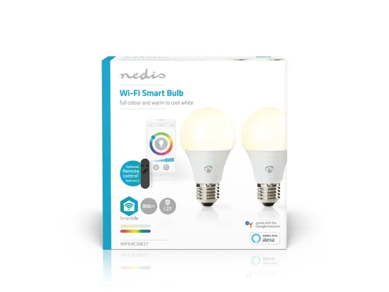 Nedis SmartLife - LED-glödlampa - E27 - 9 W (motsvarande 60 W) - klass F - RGB/varmt till kallt vitt ljus - 2700-6500 K - vit (paket om 2)
