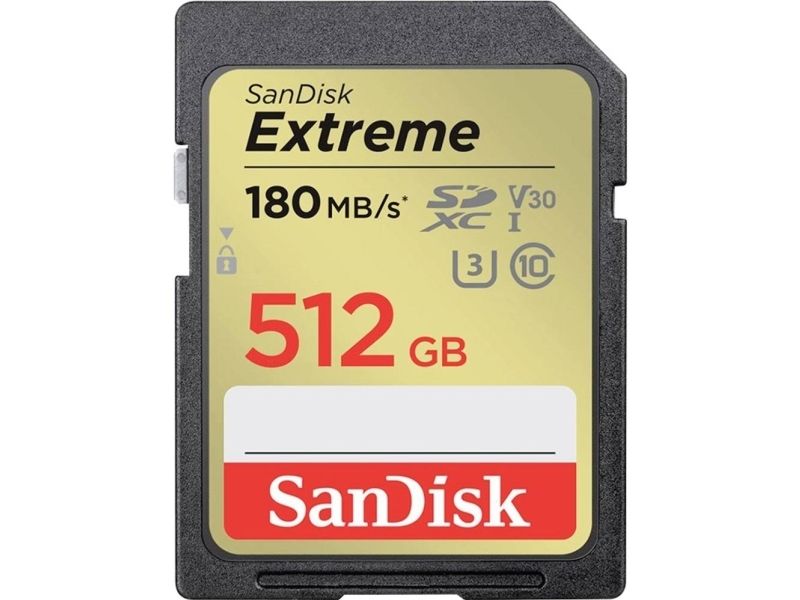 The SanDisk Extreme SDXC UHS-I memory card is a versatile and durable choice for professionals and enthusiasts. With a substantial 512 GB storage capacity, it accommodates large volumes of high-resolution photographs and 4K videos. Its robust design ensures protection against X-rays, shocks, extreme temperatures, and water, making it suitable for outdoor activities and challenging environments. High-speed performance with read rates up to 180 MB/s and write rates of 130 MB/s facilitates quick file transfers and efficient workflow. This memory card meets the Video Class V30 / UHS-I U3 / Class10 speed class, ensuring smooth video recording and playback. Whether you're a photographer, videographer, or looking to expand your device's storage, the SanDisk Extreme SDXC UHS-I memory card offers the reliability and performance needed to capture and preserve your moments.