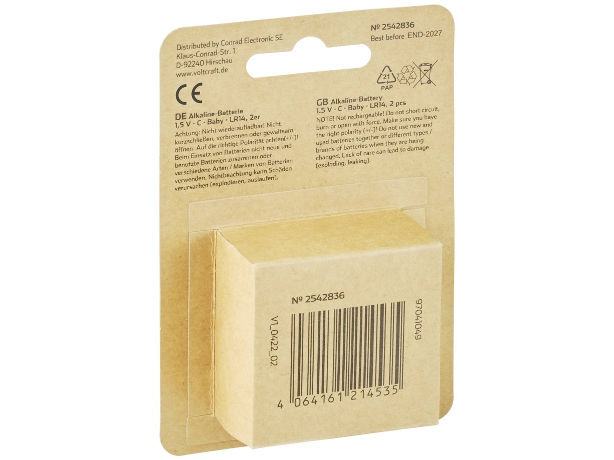C-batteri R14 VOLTCRAFT Industrial LR14 alkali-mangan 1,5 V 7500 mAh, 2 st