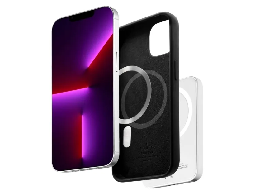 The Puro Icon Mag protective cover is designed to provide safety and style for your cell phone. Crafted from liquid silicone, this flexible back cover features built-in magnets that ensure a secure fit while allowing for easy attachment to MagSafe accessories. With a soft touch feel, this case protects against scratches and enhances the grip on your device. The raised camera bezel offers additional protection for your phone's camera, while wireless charging support ensures that your device remains charged without the hassle of removing the case.